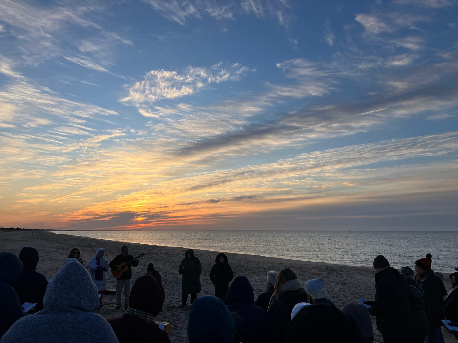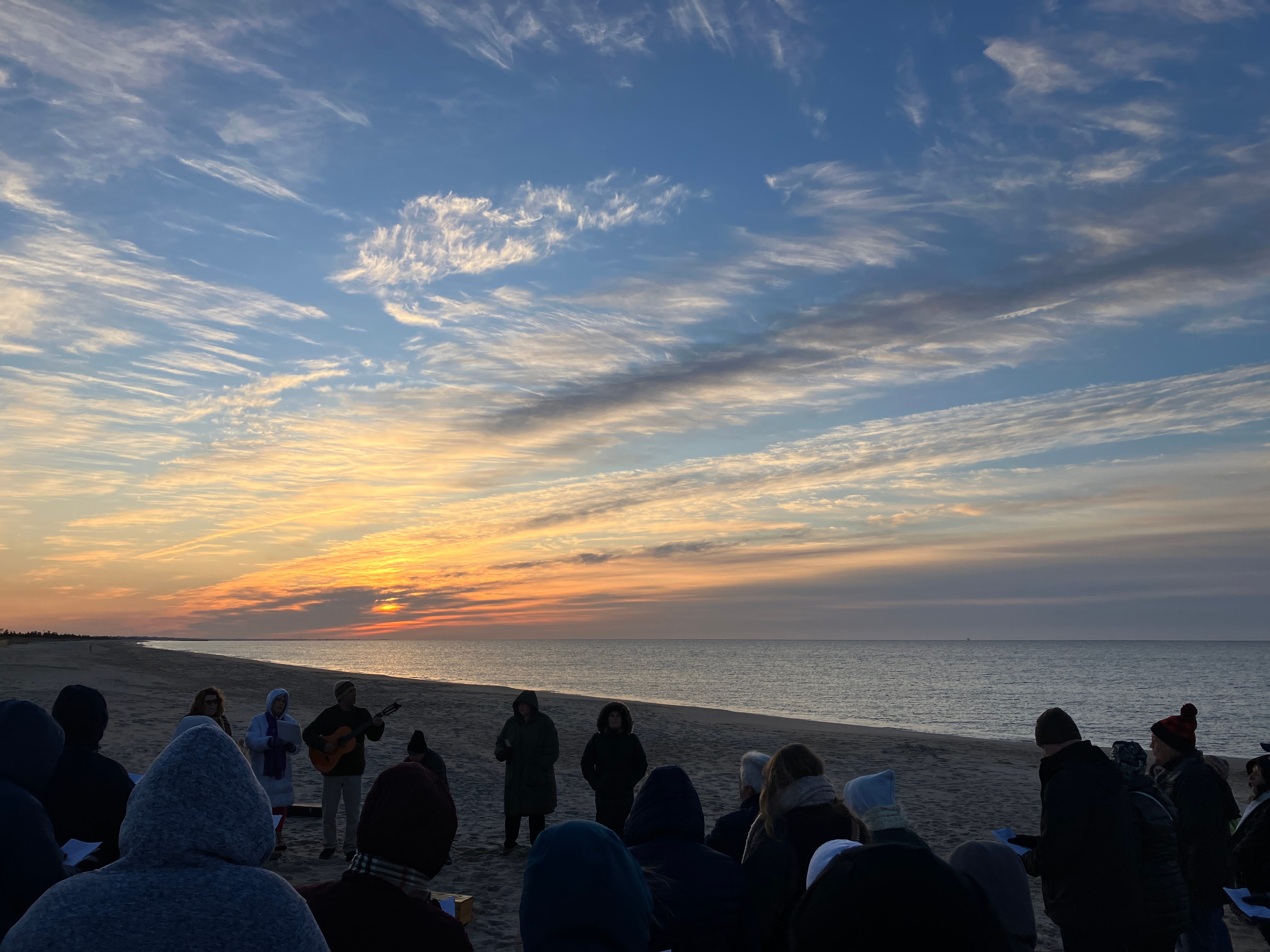 This morning on the beach in Charlestown, Rhode Island, for the annual “brrr, this is cold” Easter Sunrise worship (photo below), I thought of the above quote from Jung. I’ve always appreciated these words as they both give me pause and courage in living out life.